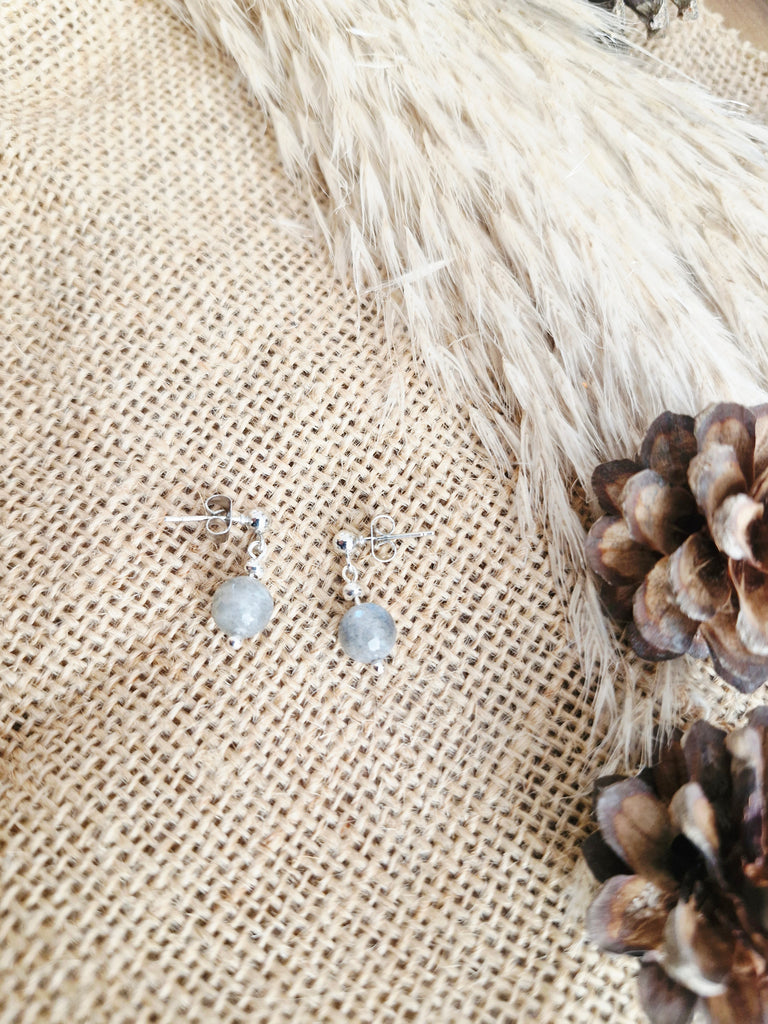 A single small faceted labradorite bead on a ball stud. Labradorite is often associated with strength, intuition and transformation. Simple everyday wear design.
