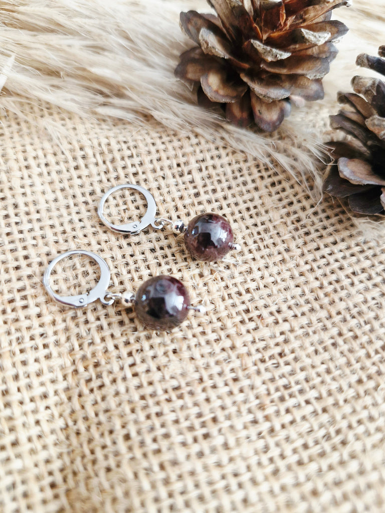 Featuring a large garnet bead, known for its grounding and energising qualities. The minimalist hoop clip allows the natural beauty of the stone to take centre stage.